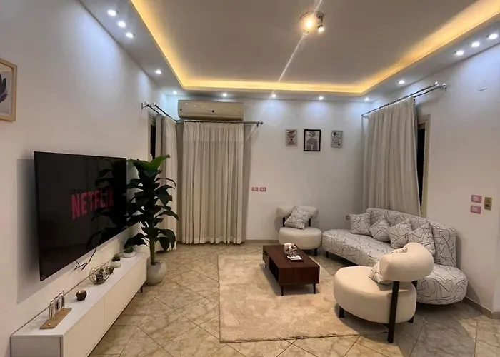 The self-catering facilities feature a fully-equipped kitchen with a refrigerator, an oven, and kitchenware. El Giza railway station is about 20 minutes' drive away.